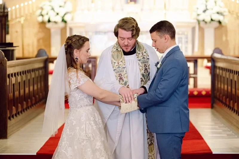 In Christian marriage, the couple make their vows, enter into life-long union, and receive the blessing of God through the Church. Whenever a couple is married in our church, the priest says the following to them in the service: